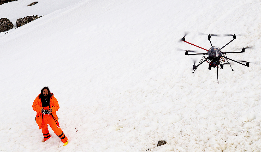 On the now 5th Research Expedition the researchers will use a research drone, in this case the OktoKopterXL, to take images of penguin colonies in different spectral ranges in order to get conclusions on the species composittion.