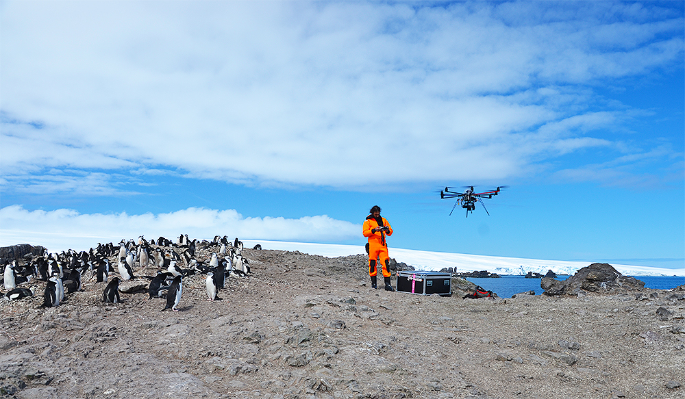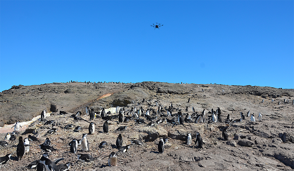 The ARF OktoXL in use in the Antarctic. The Thuringian Institute for Sustainability and Clima Protection (Think) investigates on the 15.000 flight miles away king George Island on the behalf of the Federal Environment Agenvy changes in penguin colonies.